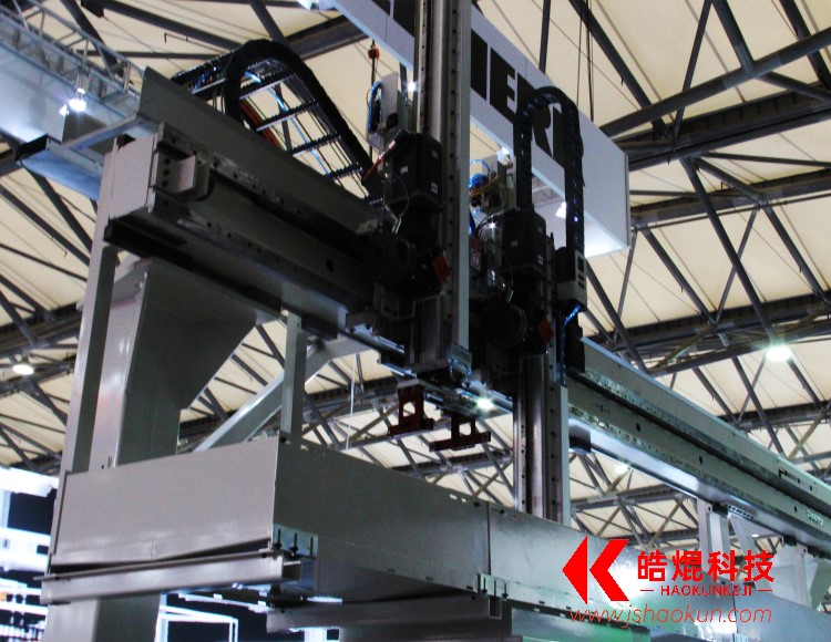 桁架機器人由門架結構、X軸組件、Y軸組件、Z軸組件以及自動控制系統等構成。其中,3個運動組件為桁架機器人的核心組件,根據系統控制能快速存取指定貨箱送到指定位置,實現密集存儲、快速揀選的功能。南京皓焜桁架機器人類似于帶有抓取裝置的空中吊車,沿著門架運動。Z軸工作端配置抓具,可自由抓取物品貨箱,搭載橫梁實現前后左右行走,在由支柱圍起的區(qū)域內直接堆放存儲貨品,進行立體垂直快速提取,實現貨物的自動接收、入庫、儲存、揀選、分類、集貨和發(fā)運等一系列工作。